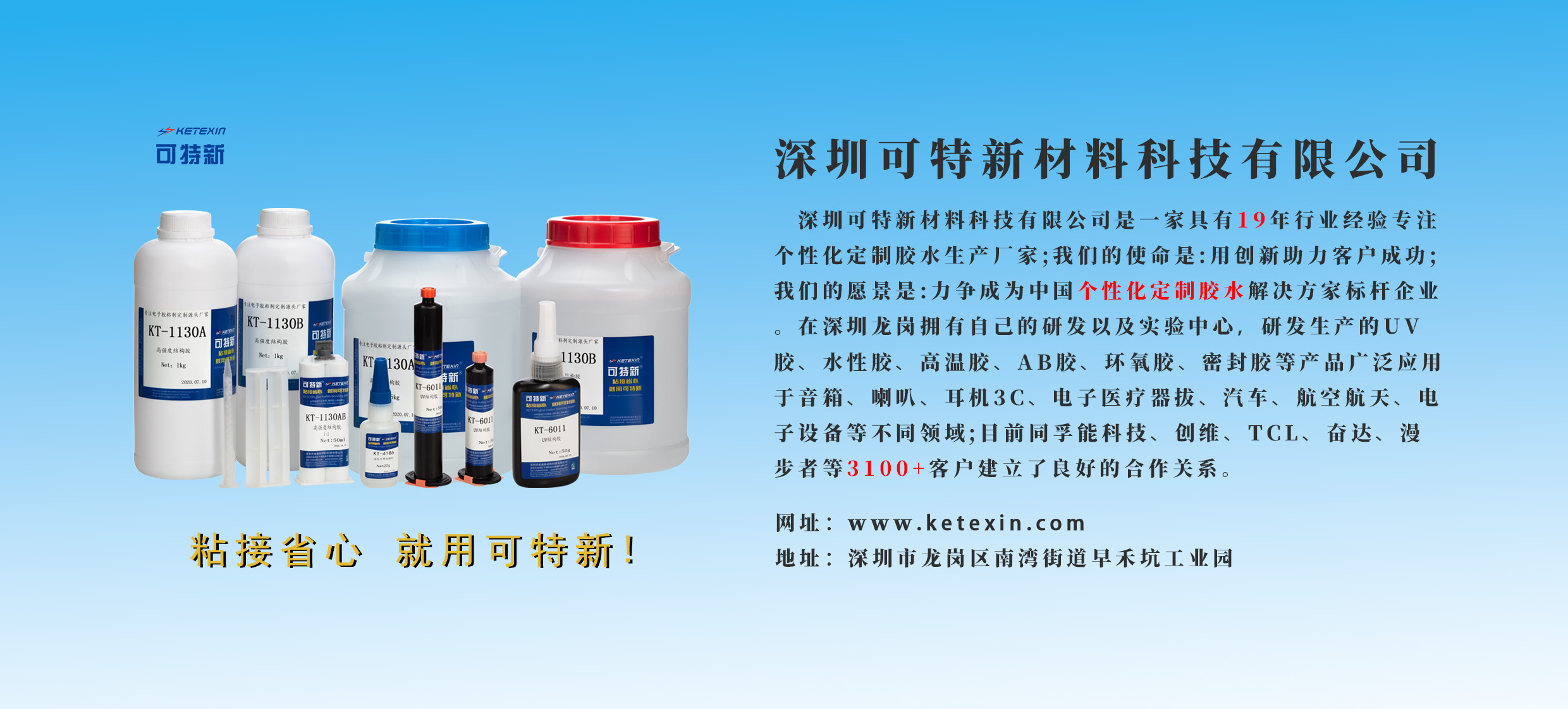 若您有耐温粘接需求,欢迎拨打咨询热线13392435108联系厂家,或登录官网www.ketexin.com查案例,也可前往深圳市龙岗区南湾街道新泰工业园k栋406实地考察。