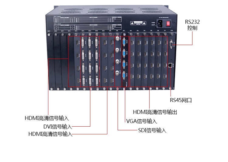 - 操作便捷:支持 WEB 浏览器与手机APP双控制模式,图形化操作界面直观易懂,可保存超1000个场景预案,切换延时<30ms。