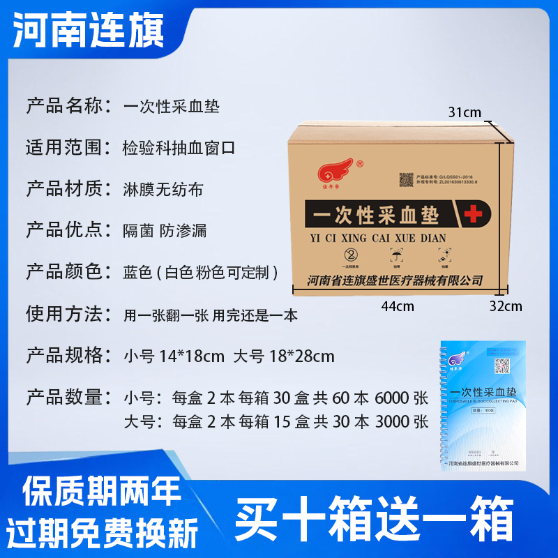 河南连旗盛世出品的书本式采血垫,又称医用采血巾、脉诊垫、输液垫巾、隔臀中单等十余种叫法,是专为医院采血窗口、检验科室打造的多场景防护耗材,涵盖 16×26cm(小号)、18×28cm(中号)、20×30cm(大号)三种规格,彻底规避过往重复设计,适配全场景医疗需求。材质选用 38g 加厚覆膜无纺布,兼顾柔韧度与防护性,经环氧乙烷全程灭菌处理,达到医用无菌级标准,从根源杜绝交叉感染风险,契合各类医疗机构院感管理要求。 该款采血垫核心功能主打防水防漏、隔菌防尘,覆膜层致密均匀,可有效阻挡血液、体液渗透,避免污染采血台面与诊疗床,减少医护人员清洁工作量。独特的书本式活页装订设计,用一张翻一张,无需整理散页,大幅提升医护操作效率,尤其适配门诊高频采血、输液场景。中号 18×28cm 为通用款,适配成人常规采血;小号 16×26cm 贴合儿科、中医脉诊需求;大号 20×30cm 适配全身检查、治疗场景,蓝色常规款也可定制白色、粉色,适配不同科室视觉需求。 包装规格按尺寸科学划分,小号 150 张 / 包、18 包 / 箱,中号 100 张 / 本、30 本 / 箱,大号 200 张 / 包、25 包 / 箱,库存充足,资质齐全,可提供全套检测报告与合规文件。广泛适用于医院采血窗口、检验科室、中医门诊、输液室、康复科等场景,覆盖精准关键词 “无菌隔菌采血垫”“书本式便捷采血垫”“多场景适配垫巾”,地域关键词 “河南连旗医疗耗材厂家”,场景关键词 “检验科室采血垫”。当前活动买十箱送一箱,批量囤货性价比拉满,兼顾实用性与合规性,是医疗机构全新优选医疗耗材。