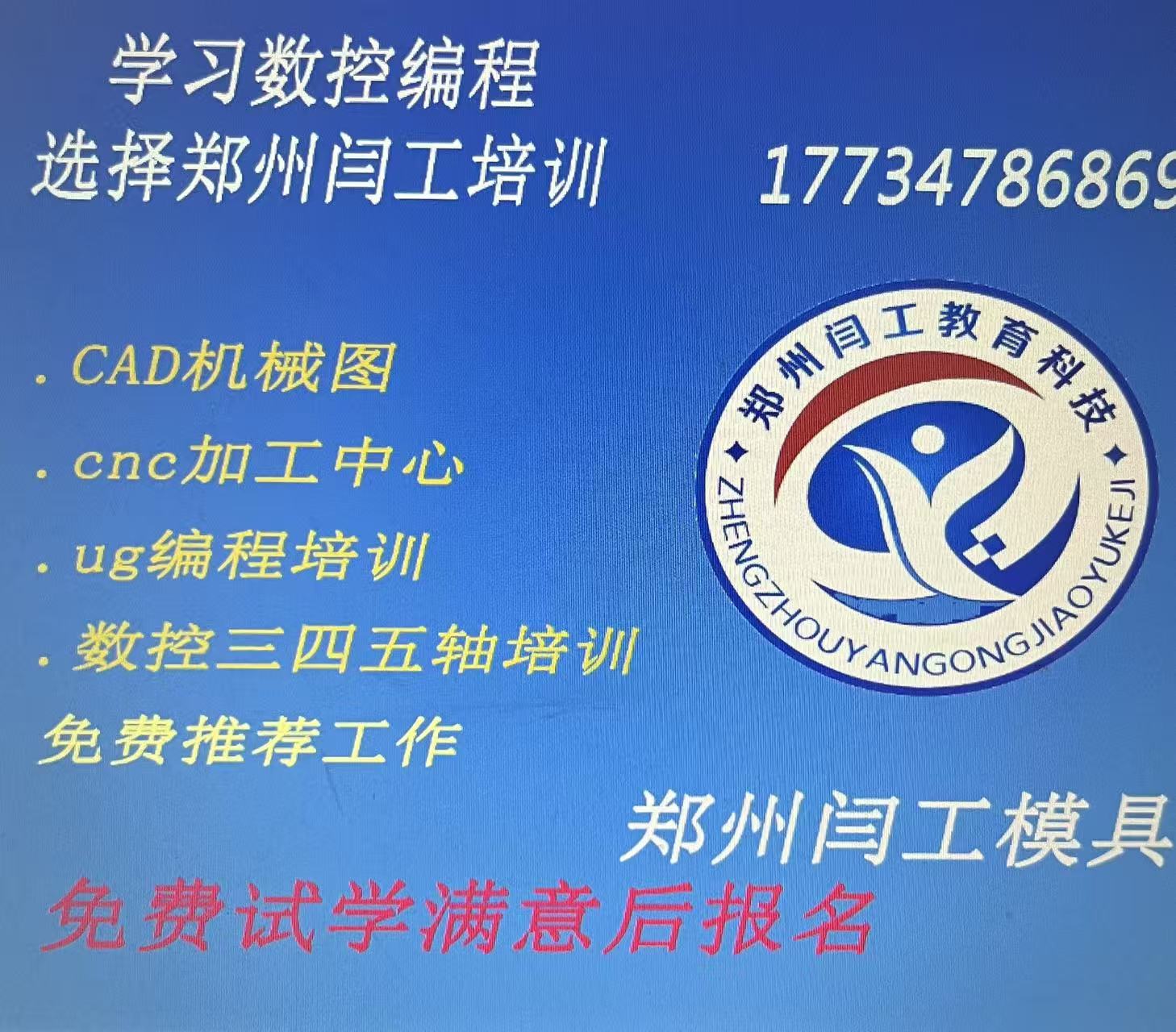地址:河南郑州荥阳荥运路织机路西北角闫工模具数控培训