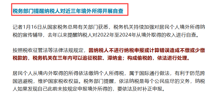 税务征管加码!近三年有境外收入的个人及企业注意了,务必立刻开展全面自查,违规后果远超想象!