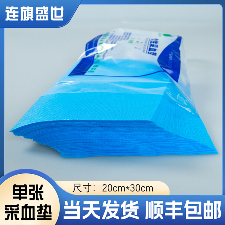河南连旗盛世生产的单张式一次性采血垫,又称检验垫巾、无菌垫单,是医院采血窗口的必备耗材。它采用覆膜无纺布材质,经环氧乙烷灭菌,防水防菌、防渗漏效果显著,能有效隔离血液与台面,降低交叉感染风险。