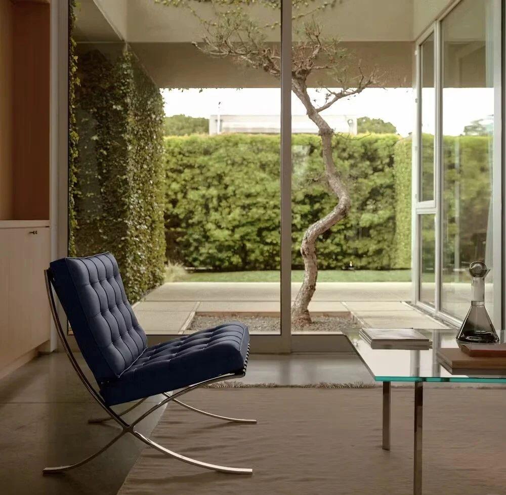 在那个古典主义家具仍占主流的年代,密斯却以颠覆传统的勇气,将建筑设计中的“结构美学”完全融入座椅设计。他摒弃了繁复的雕花、厚重的框架,转而用最纯粹的材料与线条,构建出一把兼具力量感与优雅感的座椅。最初的巴塞罗那椅以不锈钢为框架,搭配柔软的皮革坐垫,金属的冷硬与皮革的温润形成奇妙平衡,既符合德国馆“流动空间”的设计理念,又以极简形态彰显了现代主义的核心——“少即是多(Less is more)” 。